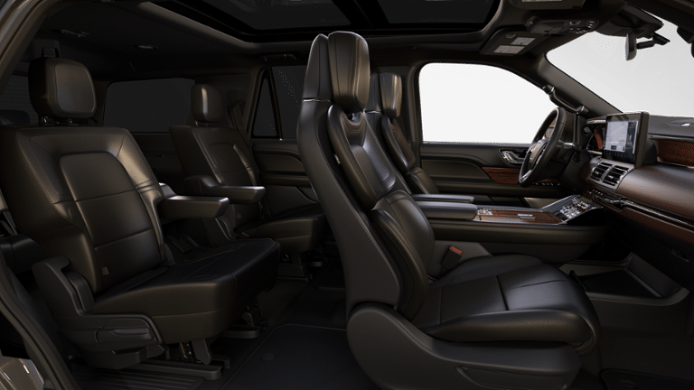 EQUIPMENT GROUP 201A RESERVE I Luxury Package, Perfect Position Seats (30-Way) w/Active Motion, power thigh extender, head restraints and auto heated/ventilated w/memory, Illuminated 1st & 2nd Row Seat Belts, ambient lighting w/LED, Lincoln Lit Star in Grille, Radio: Revel Ultima 3D Audio System w/28 Speakers, subwoofer (featuring QuantumLogic 3D Surround technology), WHEELS: 22 12-SPOKE BRIGHT-MACHINED ALUMINUM ebony black painted pockets, TRANSMISSION: 10-SPEED AUTOMATIC W/SELECTSHIFT paddle activation (STD). Lincoln Reserve with Starlight Gray exterior and Black Onyx interior features a V6 Cylinder Engine with 440 HP at 5500 RPM*.