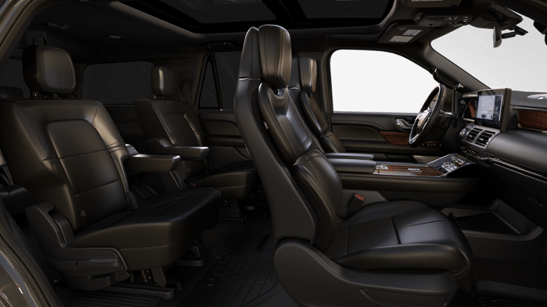 EQUIPMENT GROUP 201A RESERVE I Luxury Package, Perfect Position Seats (30-Way) w/Active Motion, power thigh extender, head restraints and auto heated/ventilated w/memory, Illuminated 1st & 2nd Row Seat Belts, ambient lighting w/LED, Lincoln Lit Star in Grille, Radio: Revel Ultima 3D Audio System w/28 Speakers, subwoofer (featuring QuantumLogic 3D Surround technology), HEAVY-DUTY TRAILER TOW PACKAGE additional Lincoln Co-Pilot360 2.0 towing technology, 8,300 lb max towing capacity, Tiered Cargo Area Management System, 4-way configurable partition, 26mm Radiator, Trailer Brake Controller, Trailer Sway Control, Pro-Trailer Backup Assist 2.0, Class IV w/4-Pin & 7-Pin Connectors, Electronic Traction Assist (eLSD), 2-Speed Transfer Case, Slow Climb Drive Mode, Front Tow Hooks, Smart Trailer Tow, 2ND ROW HTD/VENT ENHCD MASSAGE SEATS W/OUT CONSOLE, CHROME ROOF RACK W/BLACK CROSSBARS, ALL-WEATHER FLOOR LINERS W/CARPET FLOOR MATS Front and rear, TRANSMISSION: 10-SPEED AUTOMATIC W/SELECTSHIFT paddle activation (STD). Lincoln Reserve with Starlight Gray exterior and Black Onyx interior features a V6 Cylinder Engine with 440 HP at 5500 RPM*.
