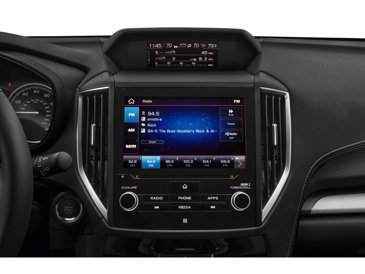 - Radio: Subaru Starlink 8.0" Multimedia Plus System -inc: AM/FM stereo HD Radio w/single-disc CD player w/MP3/WMA/CRR/RW file capability, multi-touch gesture high resolution display, 8.0" LCD screen, voice activated controls, Bluetooth audio streaming connectivity and hands-free phone and SMS text messaging connectivity, Wi-Fi hotspot, Near Field Communication (NFC), iPod control capability, rear-vision camera display, SiriusXM All Access radio and Travel Link (subscription required), smartphone integration: AHA, Android Auto, CarPlay and Pandora, Starlink cloud applications: refer to subaru.com for app availability, dual USB port, 3.5mm auxiliary input jack, 6 speakers and body color roof mounted antenna