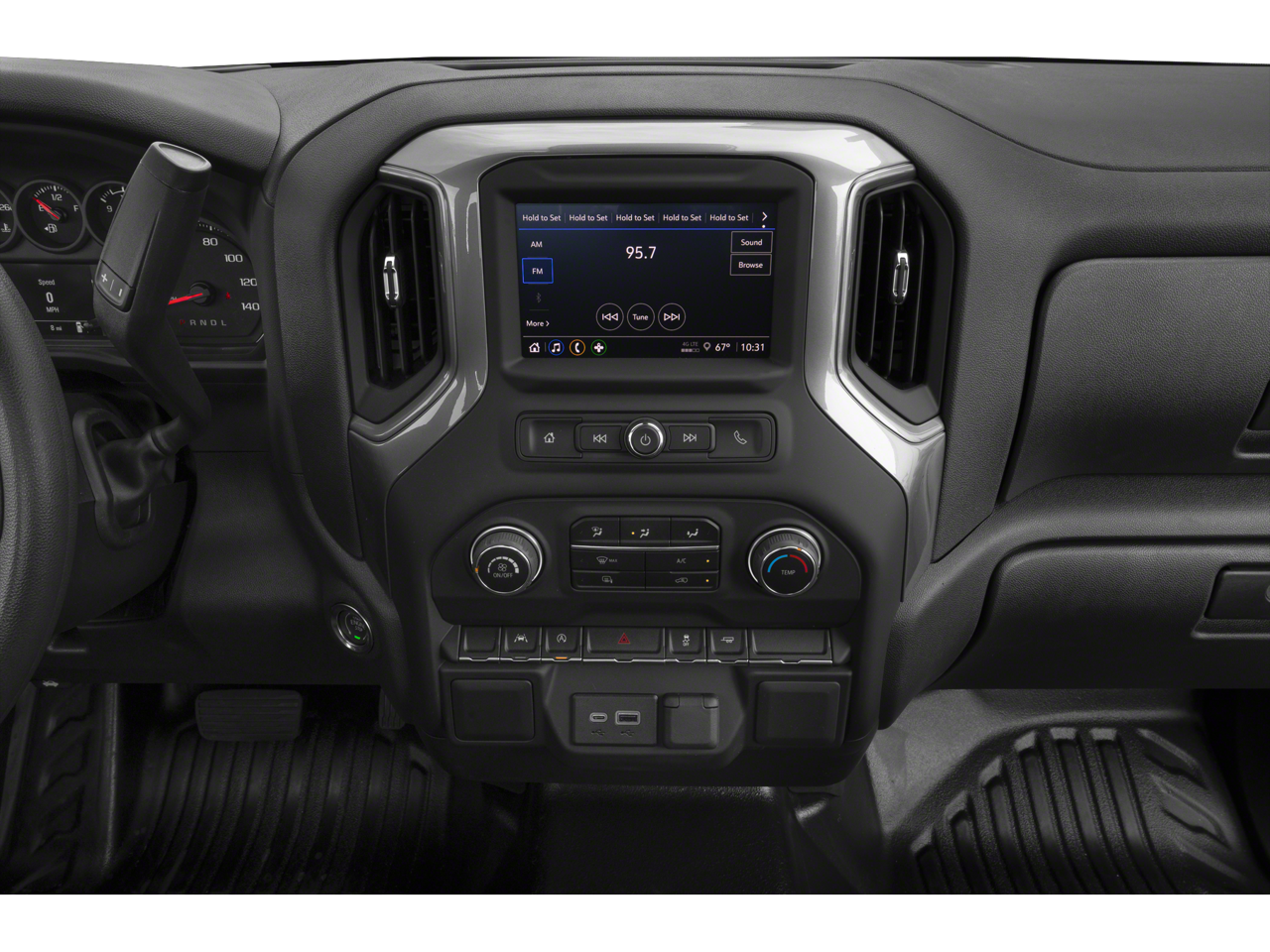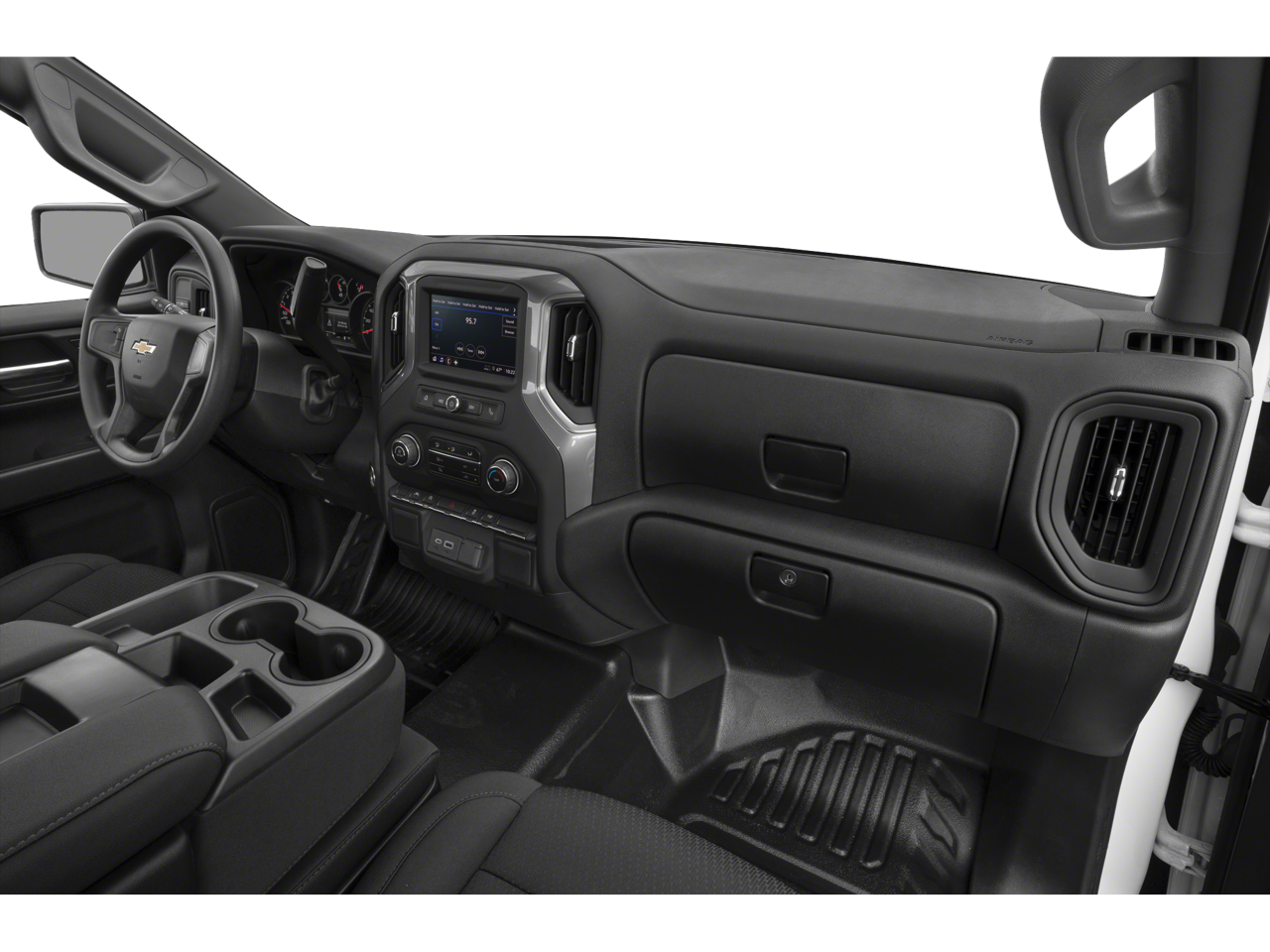 ENGINE, 5.3L ECOTEC3 V8 (355 hp [265 kW] @ 5600 rpm, 383 lb-ft of torque [518 Nm] @ 4100 rpm); featuring available Dynamic Fuel Management that enables the engine to operate in 17 different patterns between 2 and 8 cylinders, depending on demand, to optimize power delivery and efficiency, WHEELS, 17 X 8 (43.2 CM X 20.3 CM) BRIGHT SILVER PAINTED ALUMINUM, WT FLEET CONVENIENCE PACKAGE: includes (K34) cruise control, BUMPER, FRONT CHROME, AUDIO SYSTEM, CHEVROLET INFOTAINMENT 3 SYSTEM 7 diagonal HD color touchscreen, AM/FM stereo, Bluetooth® audio streaming for 2 active devices, voice command pass-through to phone, Wireless Apple CarPlay® and Wireless Android Auto® compatibility (STD), TRANSMISSION, 10-SPEED AUTOMATIC, ELECTRONICALLY CONTROLLED with overdrive and tow/haul mode. Includes Cruise Grade Braking and Powertrain Grade Braking. Chevrolet Work Truck with Summit White exterior and Jet Black interior features a 8 Cylinder Engine with 310 HP at 5600 RPM*.